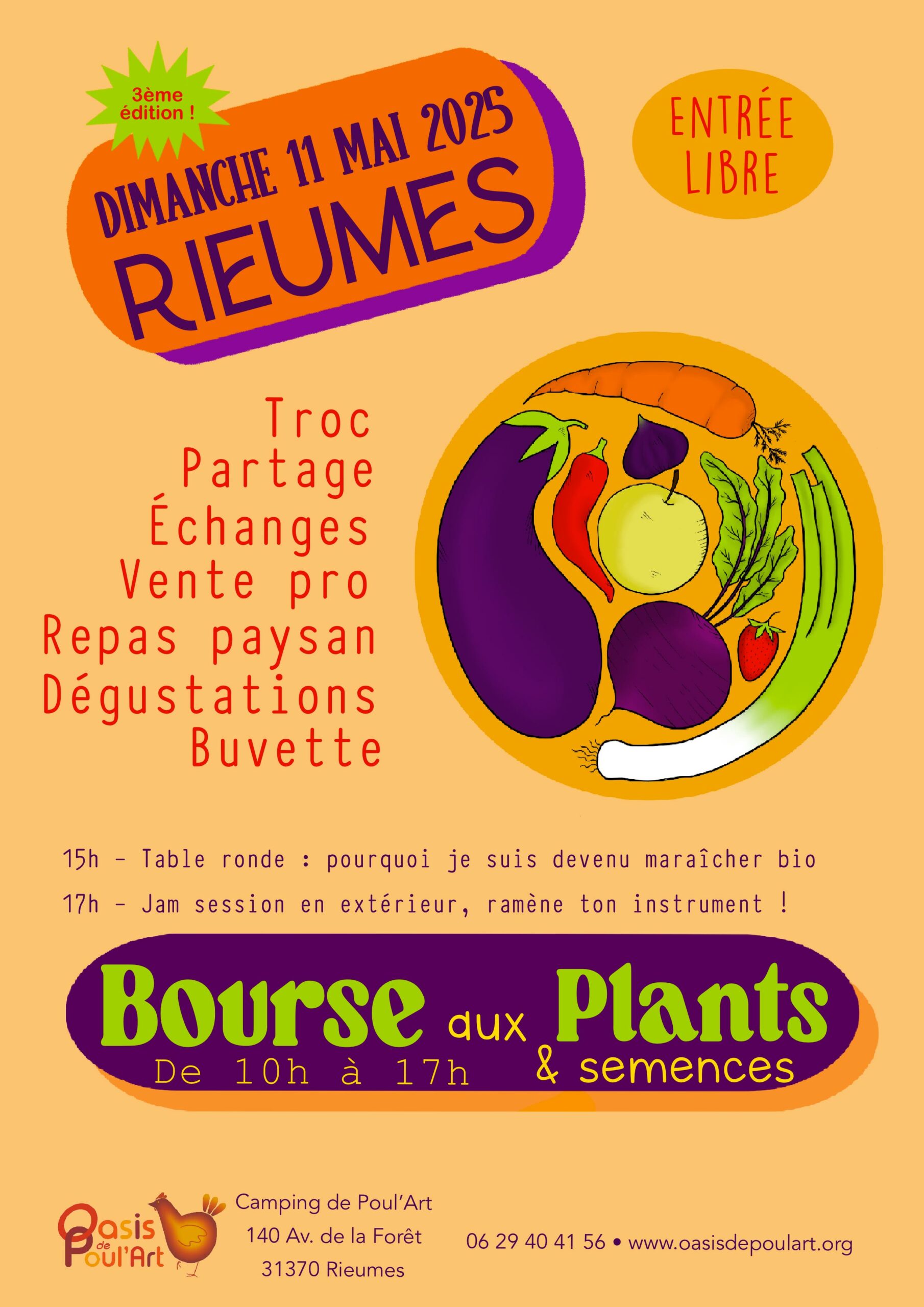 LA BOURSE AUX PLANTS ET AUX SEMENCES DE RIEUMES VOUS INVITE DIMANCHE 11 MAI 2025 DE 10H À 17H AVEC JAM SESSION EN FIN D’APRÈS-MIDI